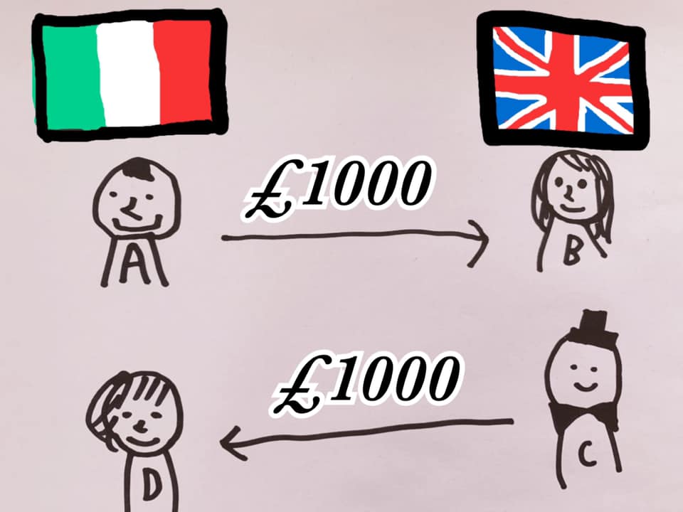 Mr. C living in the UK wants to send 1000£ to Mr. D living in Italy