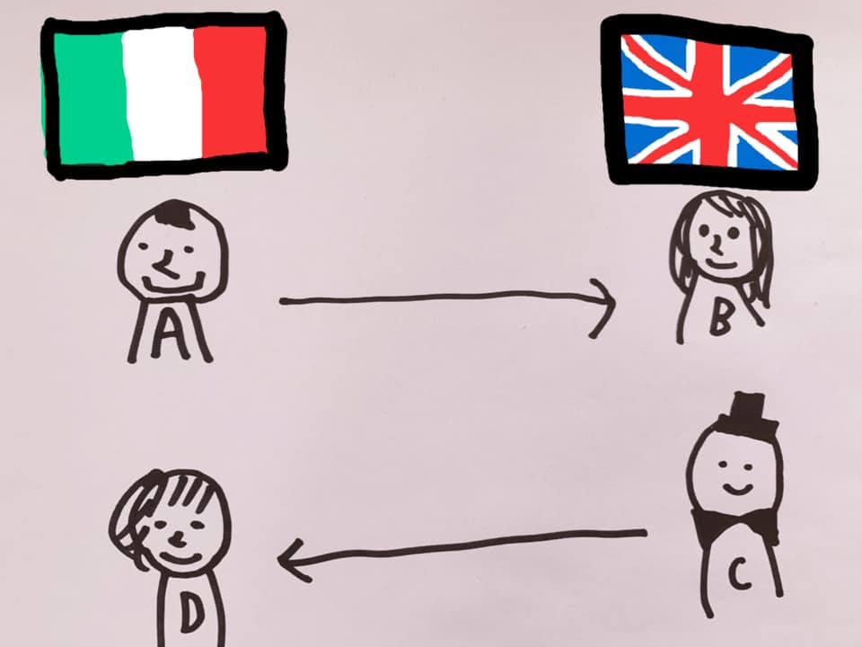 They match A and D in Italy and send 1000£ deposited from A to D.